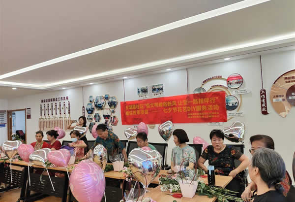 為倡導(dǎo)文明婚俗、弘揚時代新風(fēng),在七夕節(jié)來臨之際,8月17日,武漢市武昌區(qū)水果湖街道東湖路社區(qū)居委會聯(lián)合湖北木蘭花社會工作服務(wù)中心,舉辦“婚俗改革項目——七夕節(jié)花藝DIY”活動,讓居民生活更加豐富多彩。