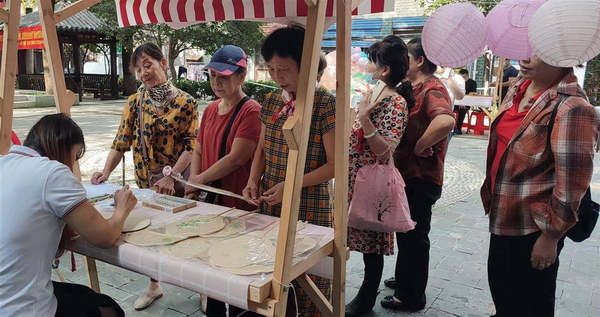 綜合市集活動吸引了百余名居民參與學(xué)習(xí)和互動。本次市集項目有布藝刺繡、中藥香包、水墨團扇、陶藝綠植、竹編燈籠、古簪盤發(fā)、自然拓印、非遺糖畫等8個非遺主題攤位,現(xiàn)場不僅展示了不同的非遺技藝,同時邀請居民們互動實踐,了解非遺文化的魅力,學(xué)習(xí)基礎(chǔ)的非遺技能。