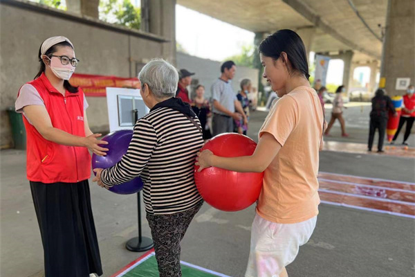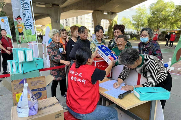 當(dāng)天下午,社區(qū)的老人們便相約結(jié)伴來到運動會現(xiàn)場。運動會開始前,工作人員認真向老人們介紹了重陽節(jié)趣味運動會的流程,引導(dǎo)老人排隊參與各種運動游戲。本次運動會根據(jù)老人的身體情況和年齡設(shè)置項目,注重安全性和趣味性。項目包括“愛的粘粘樂”、趣味投拋接沙包、“協(xié)力心連心”、歡樂保齡球、“趕動物接力賽”“憤怒的小鳥”等。參與的老人們開心得像孩子一樣,全身心地投入游戲中。居民們手持兌換券,開心地參與每個項目。圍觀的群眾不斷為參賽選手加油助威,場面熱鬧非凡,精彩紛呈。率先集齊印章的居民迫不及待地拿著禮券兌換獎品,領(lǐng)到自己心儀的禮物。