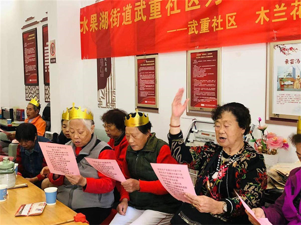 活動(dòng)中最熱鬧的環(huán)節(jié)是“詩(shī)歌大會(huì)”,老年人們合唱《沒有共產(chǎn)黨就沒有新中國(guó)》,隨后紛紛舉手發(fā)言,分享自己喜歡的歌曲和詩(shī)詞?!恫缮W印ぶ仃?yáng)》等詩(shī)詞和歌曲表演,受到了一致好評(píng)。熱愛唱歌和跳舞的老年人邊唱邊跳,贏得了熱烈掌聲。