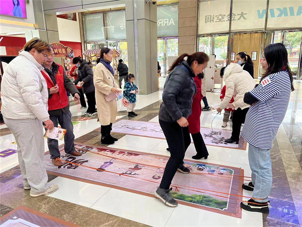 滾鐵環(huán)引起了居民們濃厚的興趣。聚集在滾鐵環(huán)區(qū)域的居民們手握鐵棍和鐵環(huán),努力復(fù)刻童年的歡樂。一位年長的居民笑著講述滾鐵環(huán)的技巧和回憶:“那個年代,我們用竹筒制作滾鐵環(huán),一路滾動在石板路上,鐵環(huán)快速滾動,發(fā)出的聲音讓我們沉浸在無盡的快樂中。”滾鐵環(huán)的聲音回蕩在活動現(xiàn)場,伴隨著居民們的笑聲和歡呼聲,童年的快樂仿佛又回到了他們身邊。