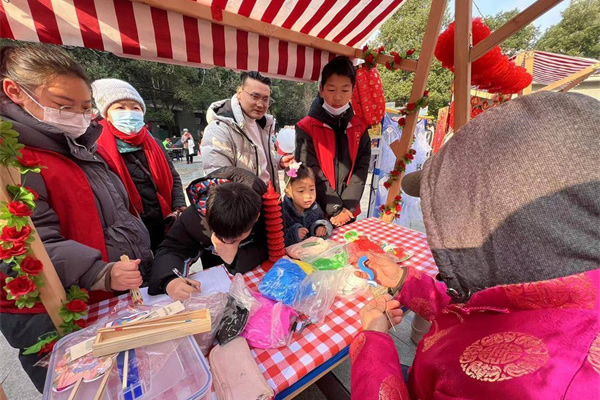 畫(huà)糖畫(huà)、手工草編、剪窗花、捏泥人……對(duì)許多居民來(lái)說(shuō),這些“小時(shí)候的專(zhuān)屬記憶”,營(yíng)造出濃濃的節(jié)日氣氛。小朋友們聚集在各個(gè)非遺民俗攤位前,排隊(duì)領(lǐng)取屬于自己和春節(jié)的那份“甜”;炸肉丸、寫(xiě)春聯(lián)的攤位前也排滿(mǎn)了居民,等待他們的是一口熱乎的“團(tuán)團(tuán)圓圓”和新的一年美好的祝愿。