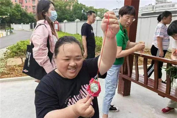 此次活動分為線上、線下兩個部分。線上即通過微信小程序回答關(guān)于端午佳節(jié)和“共同締造”的題目,答對5題者就能到社區(qū)領(lǐng)取小獎品“香囊”一份,吸引了很多年輕居民參與活動。線下活動即包粽子比賽、親子制作五彩蛋兜,不但能寓教于樂,加深大家對端午節(jié)傳統(tǒng)習(xí)俗的了解,還能增進(jìn)鄰里感情、增強(qiáng)社區(qū)凝聚力。