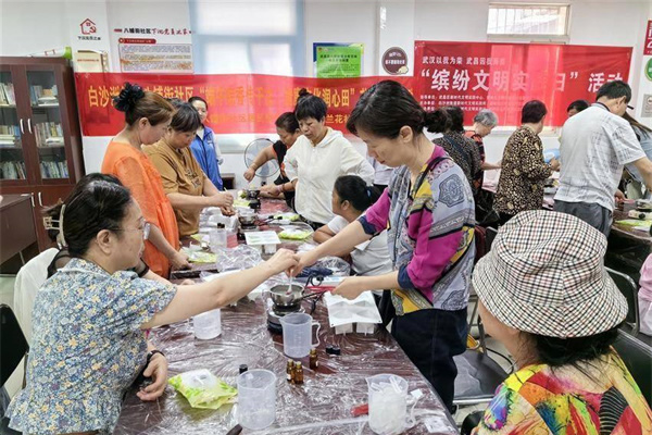 6月7日,武漢市武昌區(qū)白沙洲街道八鋪街社區(qū)攜手湖北木蘭花社會工作服務(wù)中心,開展“端午粽香傳千古,清廉文化潤心田”手工制作粽子、香皂和艾草錘活動,吸引了許多居民參與。