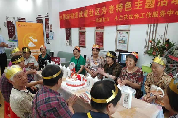 6月19日,武漢市武昌區(qū)水果湖街道武重社區(qū)老年人服務(wù)中心熱鬧非凡,“溫情相伴·樂(lè)享銀齡”老年人特色集體生日會(huì)活動(dòng)正在進(jìn)行。該社區(qū)6月至8月過(guò)生日的60歲以上老年人共20人參加活動(dòng),與社區(qū)工作人員、志愿者齊聚一堂,吃蛋糕、做手工、拉家常。