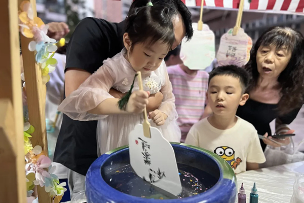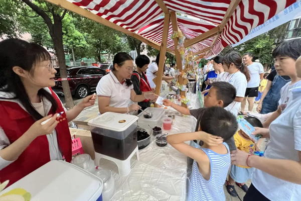 夏末秋初,居民們來(lái)到社區(qū)廣場(chǎng),積極參與清涼節(jié)的各項(xiàng)活動(dòng)。在手工體驗(yàn)區(qū),社區(qū)工作人員給孩子們講解漆扇畫(huà)的特點(diǎn),現(xiàn)場(chǎng)演示如何利用現(xiàn)有材料進(jìn)行創(chuàng)意制作。在游戲區(qū),工作人員設(shè)計(jì)了幾款與水相關(guān)的游戲,用寓教于樂(lè)的形式宣傳防溺水,孩子們盡情玩耍。沙拉、龜苓膏、蜜豆綿綿冰,消暑食品讓大家大飽口福。