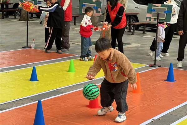 在社工們的指揮下,孩子們積極參與各個趣味運動項目,如“障礙籃球”“抖甩乒乓球”“趣味趕小豬”“趕雞入籠”等,歡聲笑語此起彼伏?!按筇鴺贰表椖恐?,孩子們站在袋鼠簍子里,像脫韁的小野馬奔向終點。“兩人三足”需要家長和孩子步調(diào)一致,配合默契。運動場外,啦啦隊大喊“加油”,大家盡情享受著運動帶來的快樂。
