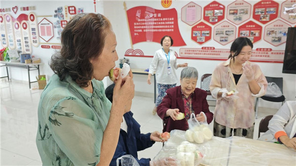 在等壽桃蒸熟的同時(shí),宣布“銀齡守望團(tuán)”志愿者服務(wù)隊(duì)正式成立,并在活動(dòng)現(xiàn)場明確服務(wù)方向與目標(biāo),鼓勵(lì)老人們積極參與志愿服務(wù)。不一會(huì),壽桃花饃蒸熟了,現(xiàn)場的張阿姨吃了一口花饃,開心的說:“在這個(gè)溫馨的重陽佳節(jié),社區(qū)組織的非遺中式面點(diǎn)制作活動(dòng)讓我們感受到了傳統(tǒng)文化的魅力,親手制作的壽桃花饃不僅美麗寓意深遠(yuǎn),更讓我們找回了久違的手作樂趣。特別是‘銀齡守望團(tuán)’的成立,讓我們這些退休人員有了繼續(xù)發(fā)光發(fā)熱的平臺(tái),能為社區(qū)、為社會(huì)做點(diǎn)貢獻(xiàn),感到非常自豪和幸福。感謝社區(qū)為我們提供了這樣一次難忘的聚會(huì),讓我們?cè)谙硎芡砟晟畹耐瑫r(shí),還能傳遞愛與溫暖,這樣的活動(dòng)真是暖到了我們心坎里!”