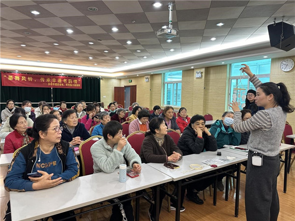 中國書法是中華文化的瑰寶,歷經(jīng)數(shù)千年演變,形成了篆、隸、楷、行、草五種書體。它不僅是文字的藝術(shù)表現(xiàn),更是書法家情感與個性的抒發(fā),承載著深厚的歷史文化底蘊,體現(xiàn)了中華民族的獨特審美情趣和哲學(xué)思想。活動開始,老師先向社區(qū)居民普及中國書法的基本特點、歷史沿革及藝術(shù)價值,提高大眾對書法藝術(shù)的欣賞能力,并通過ppt展示部分書法作品。
