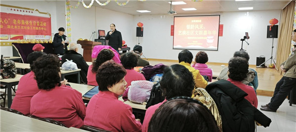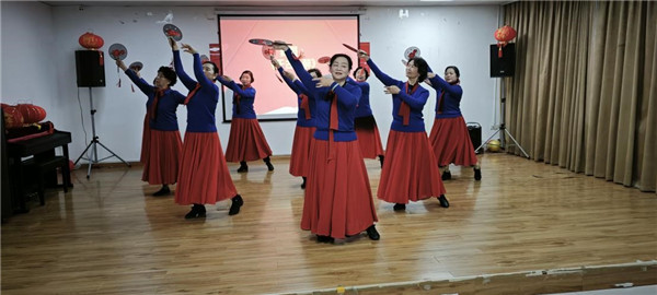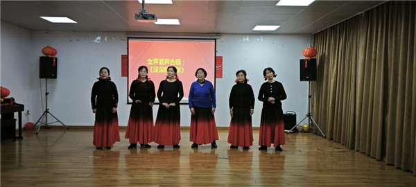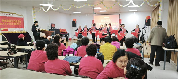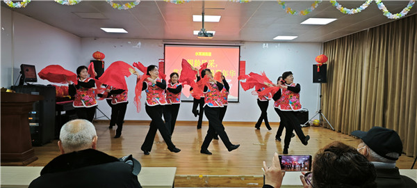 “山丹丹的那個開花呦,紅艷艷~~”隨著動聽的音樂響起,略施粉黛,統(tǒng)一著裝的阿姨們陸續(xù)登場,隨著音樂揮舞著手里的折扇,在空中畫出優(yōu)美的弧線,臺下又響起陣陣掌聲。隨后,文娛團隊又表演了女生獨唱《你是血脈我是血》、女聲混聲合唱《深深的海洋》、男生獨唱《娥嫚》、舞蹈《千古一醉》、表演唱《龍船調(diào)》、歌舞《精忠報國》等。臺上的文娛骨干熱情洋溢的舞蹈和歌聲使這個冬季顯得溫暖又溫情。臺下壽星欣賞著大家的表演,并給予掌聲的肯定。