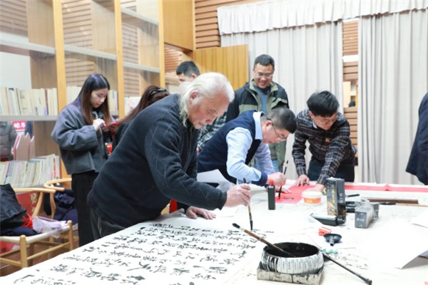 活動(dòng)現(xiàn)場人頭攢動(dòng),氣氛熱烈,墨香四溢。一紙墨香,皆是祥瑞,于黑墨紅紙間感受的是筆墨丹青的獨(dú)特魅力,浸潤的是優(yōu)秀的傳統(tǒng)文化,續(xù)寫的是對未來的美好期許?!按髱煛眰儞]毫潑墨,筆走龍蛇,將新春的祝福凝聚在墨香里筆尖上,送到干部職工心田里。