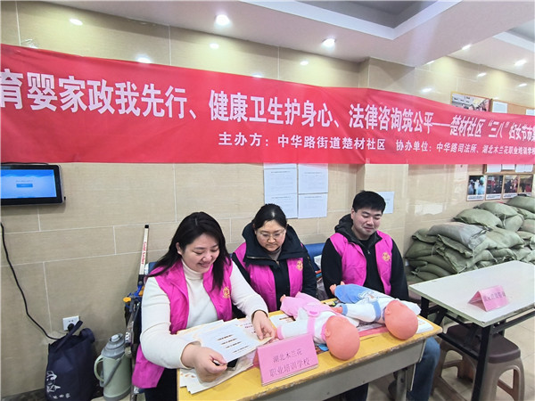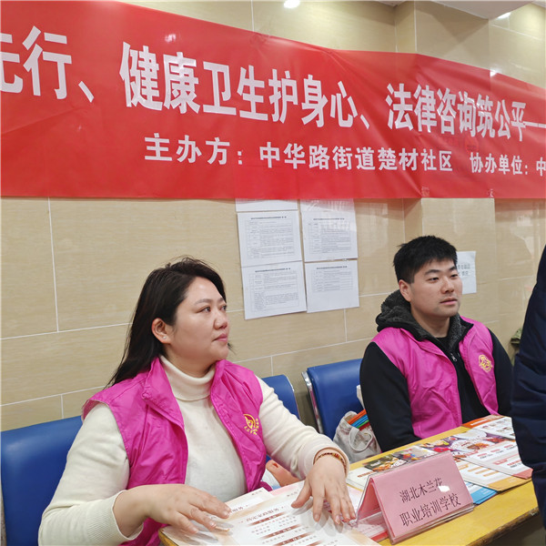 3月6日上午,湖北木蘭花職業(yè)培訓(xùn)學(xué)校聯(lián)合中華路街道楚材社區(qū)等多家單位,開展“育嬰家政我先行、健康衛(wèi)生護(hù)身心、法律咨詢筑公平””主題市集活動(dòng),為廣大居民朋友送上技能禮包與節(jié)日歡樂(lè)。