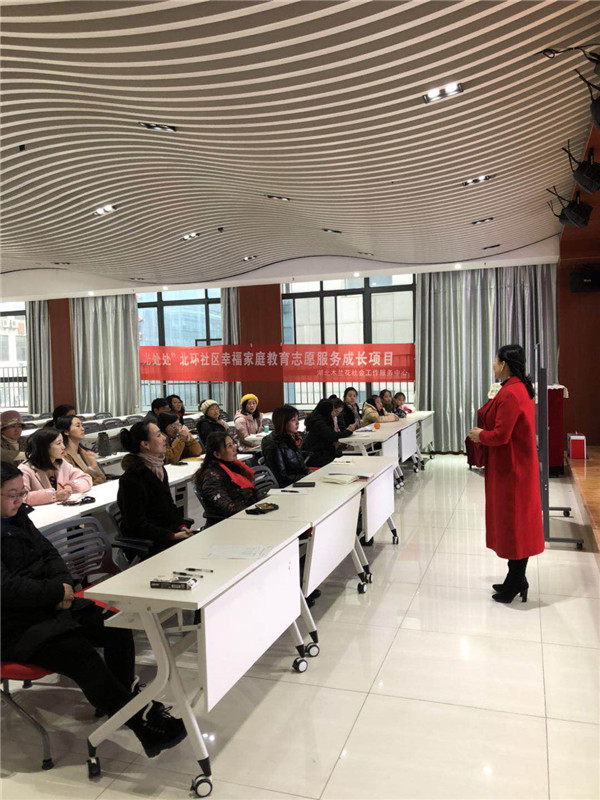 12 月 15 日,由湖北省婦聯(lián)旗下公益品牌木蘭花社會工作服務中心承辦的北環(huán)路社區(qū)家庭教育講堂又開課了。中級講師、家庭輔導師王小曼主講,主題為“家庭公約與幸福家庭——如何做一名合格的家長”。
