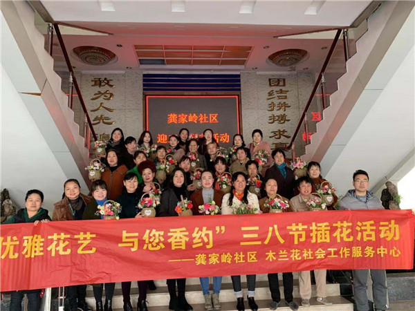 3月7日上午,龔家?guī)X社區(qū)居委會(huì)與木蘭花社會(huì)服務(wù)中心一起開(kāi)展了一期“優(yōu)雅花藝 與您相約”三八節(jié)插花活動(dòng)。社區(qū)插花活動(dòng)的消息剛一發(fā)出,就激起了很多居民的參與熱情。報(bào)名的30多位居民前來(lái)參加花藝會(huì)活動(dòng)。